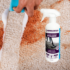 NANOCLEAN AC8 do wykładzin to zaawansowany środek do czyszczenia, odgrzybiania i dezynfekcji wykładzin i dywanów. Jego unikalna formuła została opracowana z myślą o skutecznym usuwaniu trudnych plam, pleśni, bakterii, roztoczy oraz nieprzyjemnych zapachów od materii organicznej, co zapewnia długotrwałą świeżość i higienę powierzchni dywanowych. Nanoclean AC8 wyróżnia się bezalkoholową formułą bez chloru, dzięki czemu jest bezpieczny zarówno dla materiałów, z których wykonane są wykładziny i dywany.
