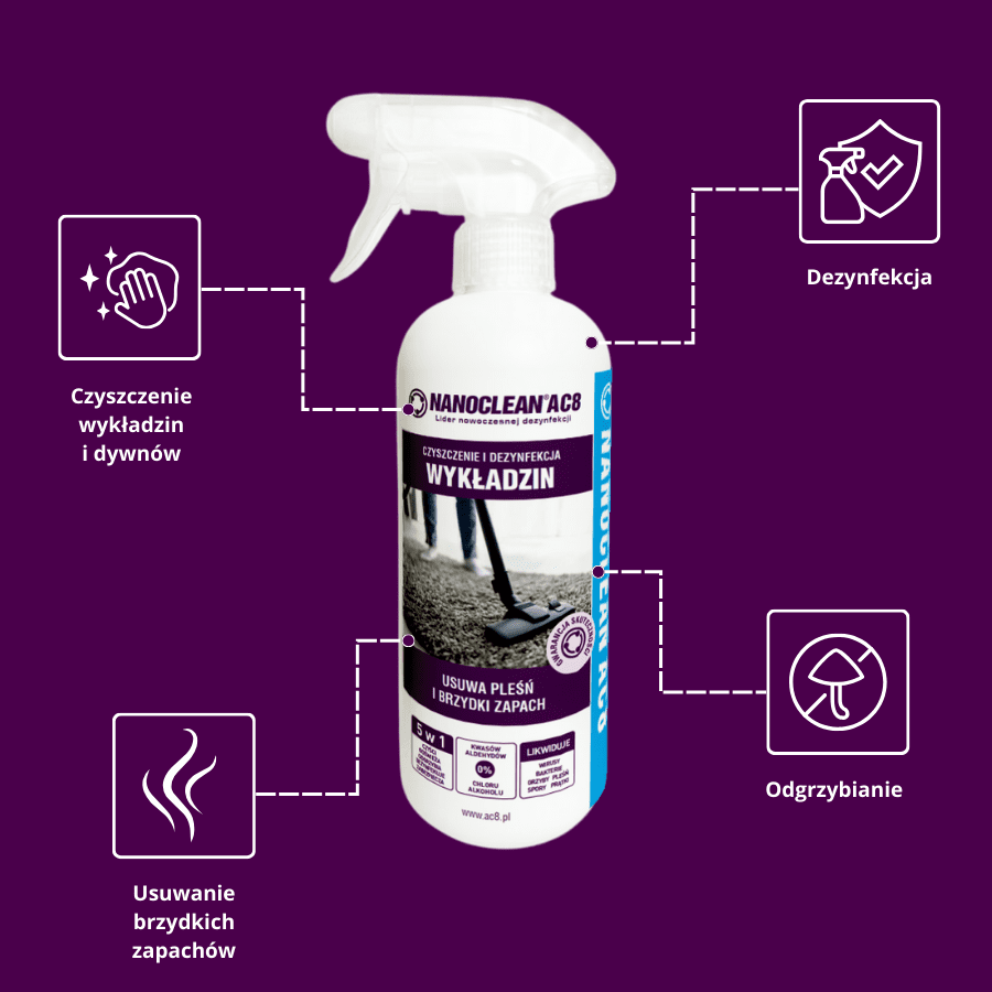 ![Płyn czyszcząco-dezynfekujący NANOCLEAN AC8 HOME WYKŁADZINA Gotowy do użycia o zapachu lawendy kanister 5L. [AC8L2G5]](https://ac8.pl/wp-content/uploads/2024/09/wykladzina-5l.png)